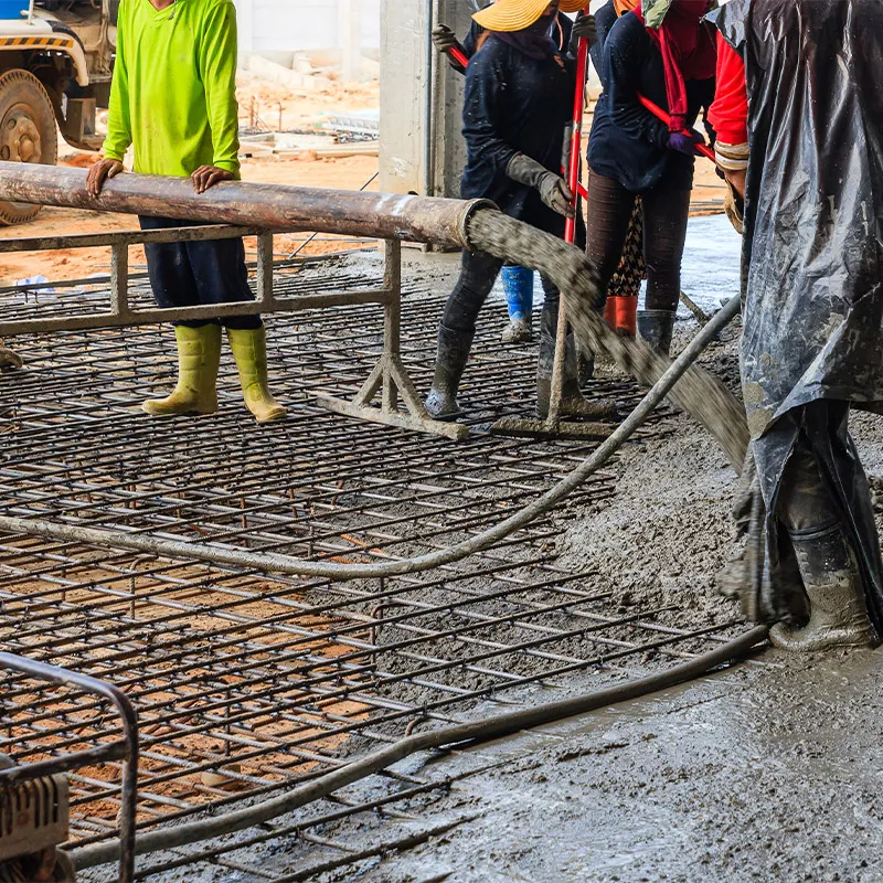 The crew constructs forms in the desired shape, preparing the area for the concrete pour